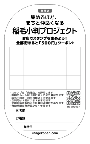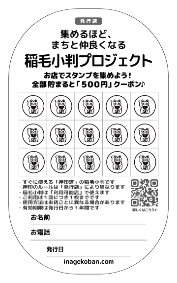 | スタンプ 押印基準 | それぞれの店舗にお任せ *スタンプが貯まった小判が、「500円券」となる計算でお願いします |