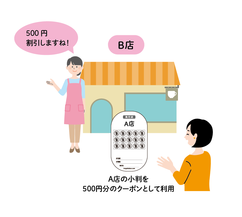 「500円」のサービスは、自分のお店で利用しても良いし、他店(利用可能店)で使うこともできます。