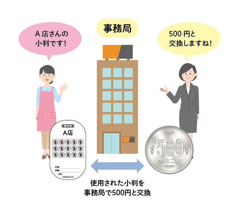 B店は、両替所(=事務局)にて稲毛小判と引き換えに